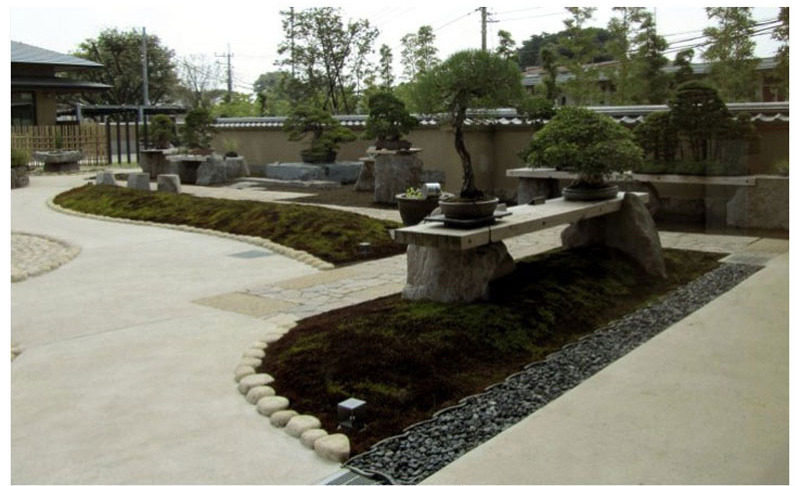 큰 분재와 큰 자연석으로 공간 처리가 아주 적절하고 힘이 있어 보입니다.