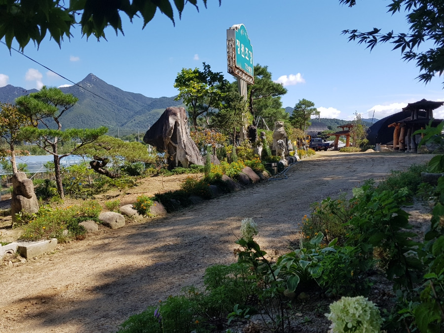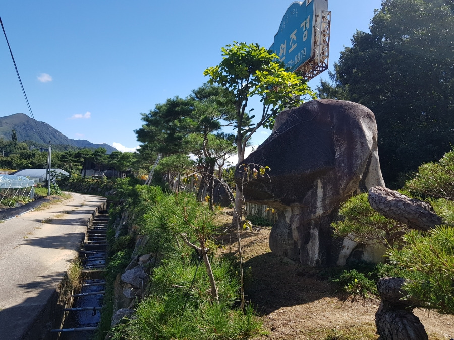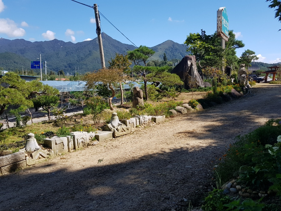 큰 정원석과 정원조경 간판