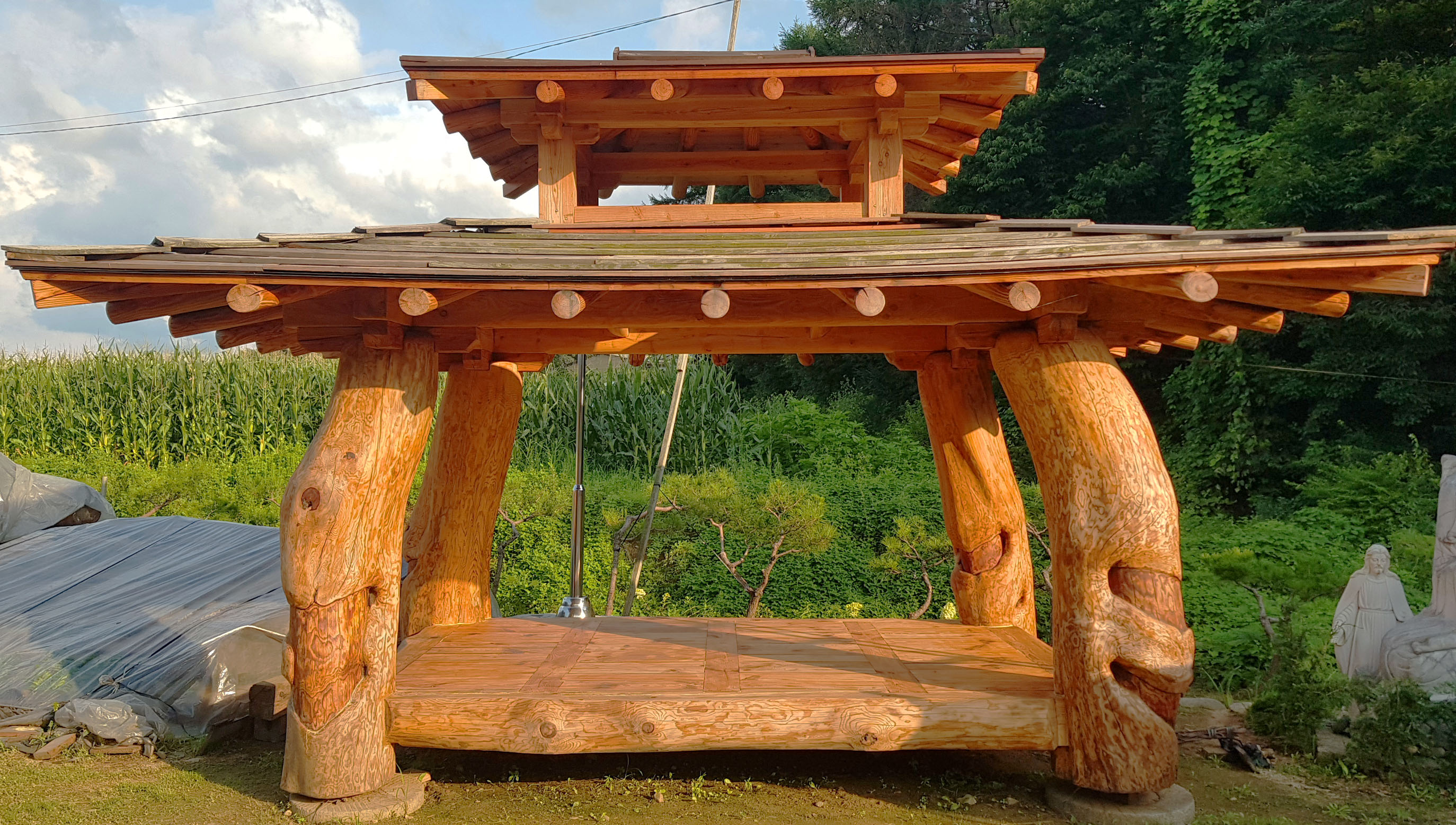 보이지 않는 곳에 깃든 장인정신: 소나무와 양평돌의 파라솔 정자