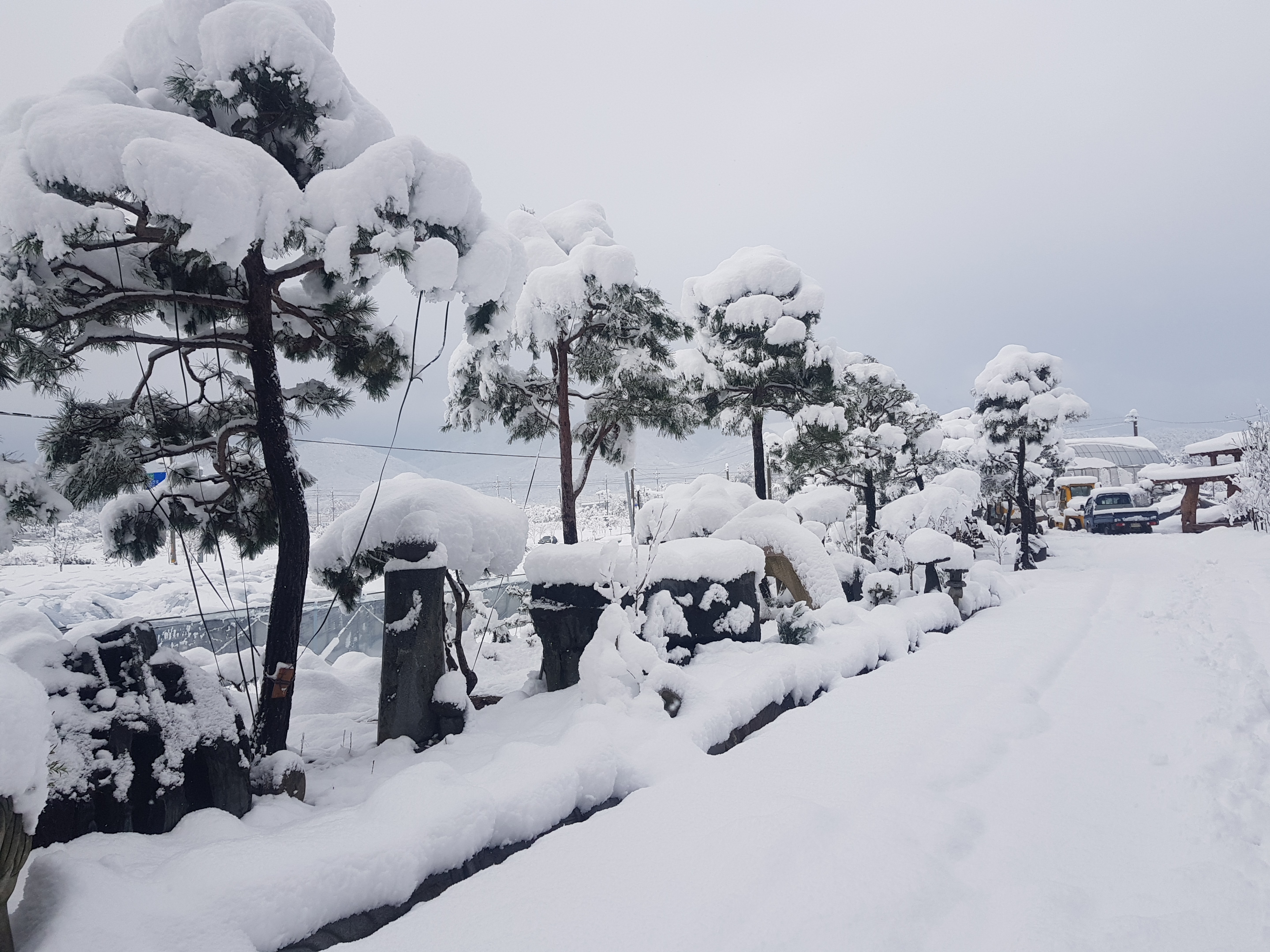 어제는 용문산 강설량이 22cm 내렸다고 하네요. 아침일찍 02굴삭기로 진입로 100미터를 긁어 놓았습니다. 그런데 오늘아침에는 어제 보다 더 많이 눈이 내린것 같아요.