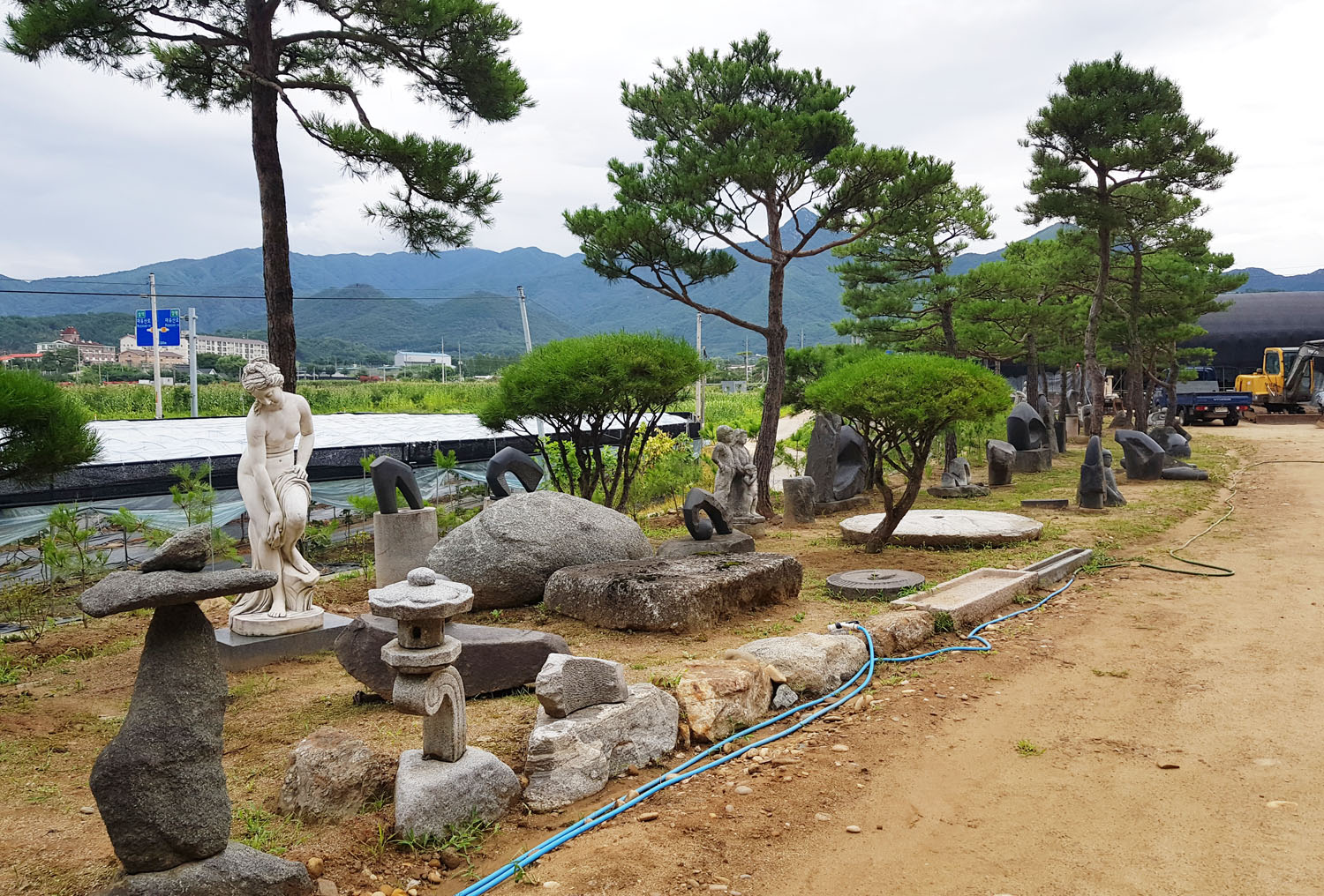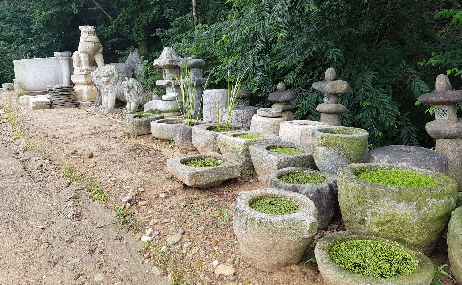 돌수반 돌물확 돌절구 석등 물확 위에 떠 있는 것은 개구리밥입니다.