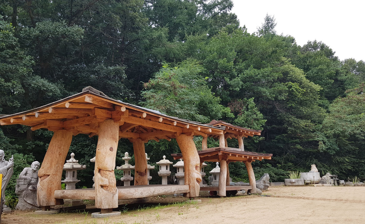 2층짜리를 전면에 보이는 원두막에 올리면 3층이 되는 원두막입니다.