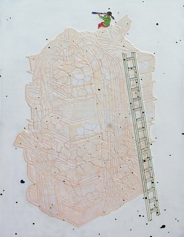 부산동백미술관 – 구름잡는 사람 ( 140X270×20 cm, 혼합재료, 1992)